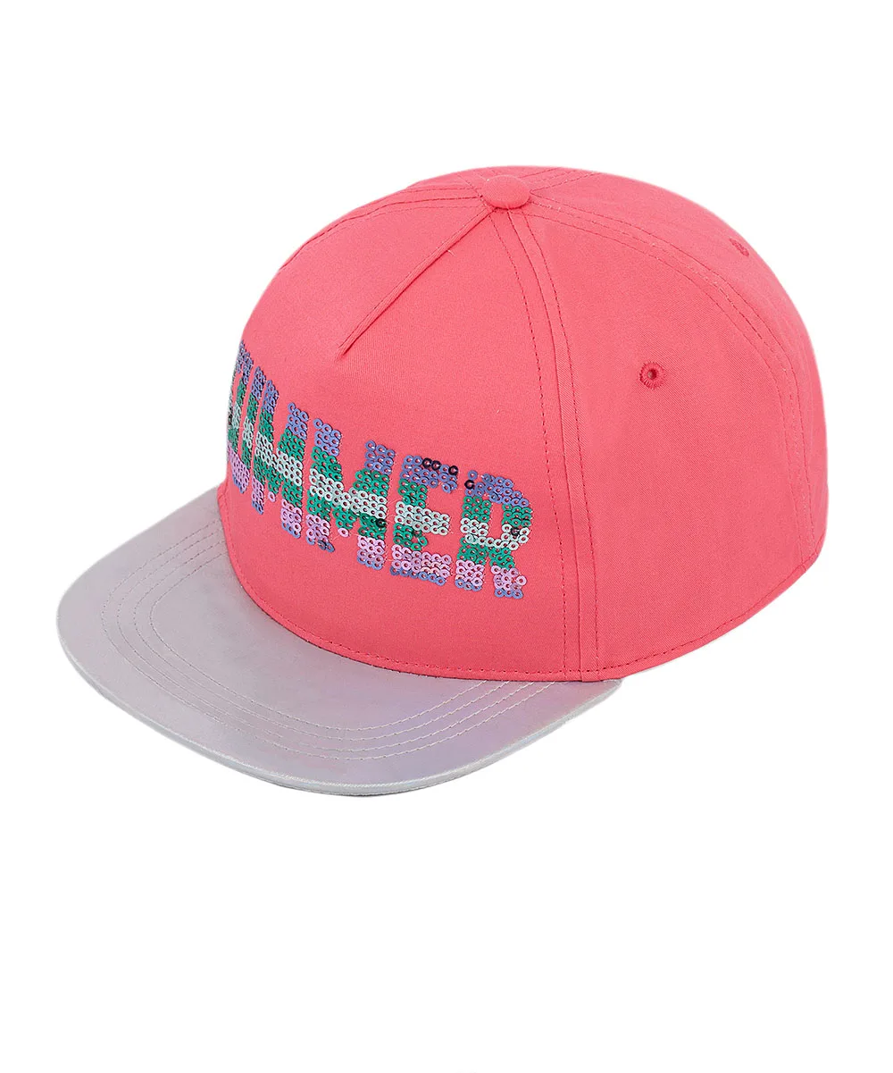 Бейсболка для девочки. Декорирована пайетками, козырьком из ткани с голографическим эффектом. Форма SNAPBACK - "прямой козырек". Регулировка - пластиковый фиксатор.