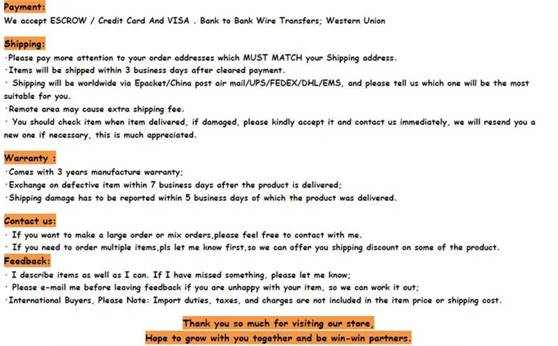 Описание: 1. Размеры: Стекло высота: 12,5 см, диаметр: 5,5 см, вместимость: 120 мл Высота бутылки: 32 см, емкость 800 см 2. Конфигурация: 1 бутылка для вина + 6 стаканчиков для вина Материал: бессвинцовое Хрустальное стекло 4. Вес: 3,2 кг, после того, как упаковка: 4,5 кг 5. Упаковка: подарочная упаковка 6. Послепродажное обслуживание: если продукт поврежден, пожалуйста, свяжитесь с нами как можно скорее. Мы доставим товар снова или вернем его. Груз для второй доставки будет оплачиваться нашим продавцом