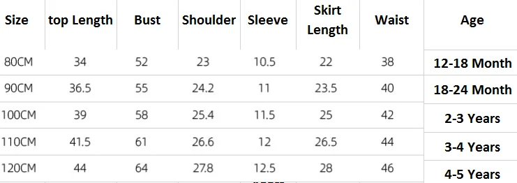 Добро пожаловать 100% Новинка, высокое качество Основной цвет: как на картинке Новинка моды Материал: хлопок Внимание: если ваш ребенок пухлый, мы рекомендуем выбрать больший размер, спасибо. Просим перепроверять размеры детей, рост и полноту по размерной таблице перед покупкой/подачей заявки. Спасибо.Посылка1xtop + 1xюбки + 1xповязка на голову Таблица размеров: