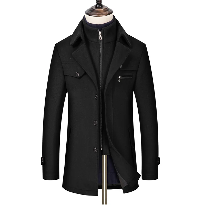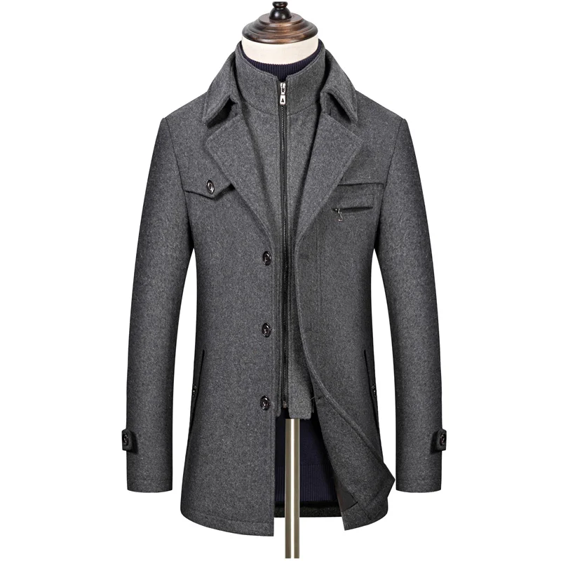 Мужское модное приталенное шерстяное пальто выше колена роскошное