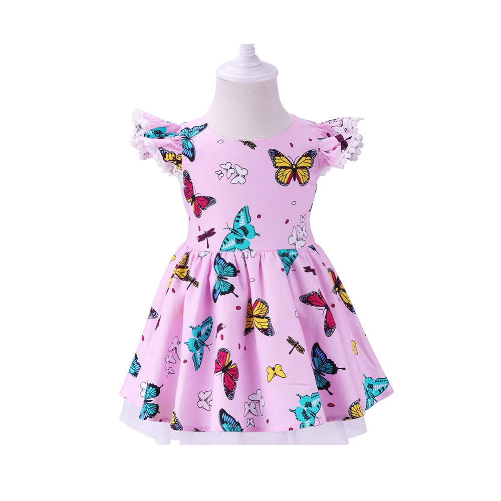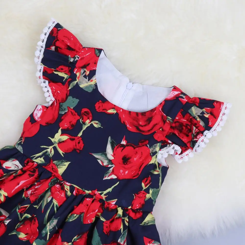 Платье для девочек с оборками и цветочным рисунком и бантом