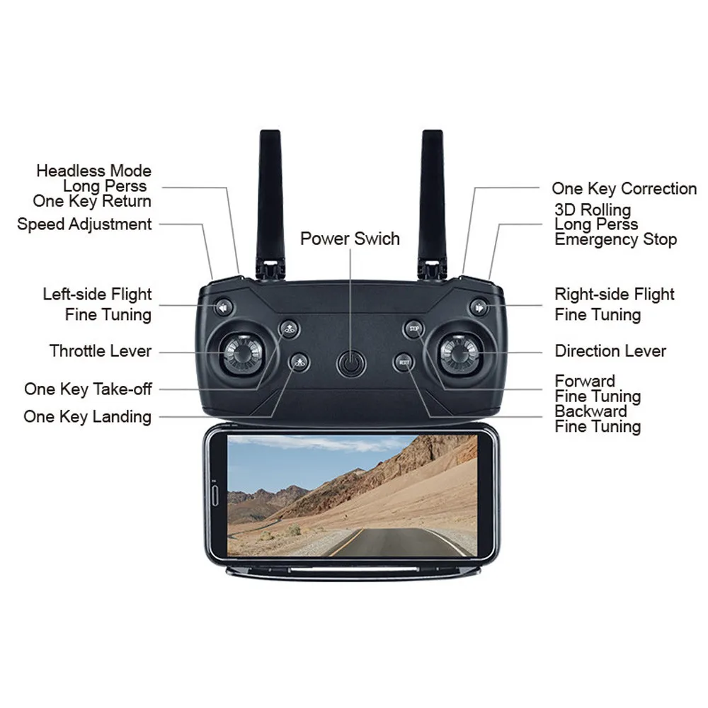 light, headless mode, one automatic return button, height hold mode, WiFi