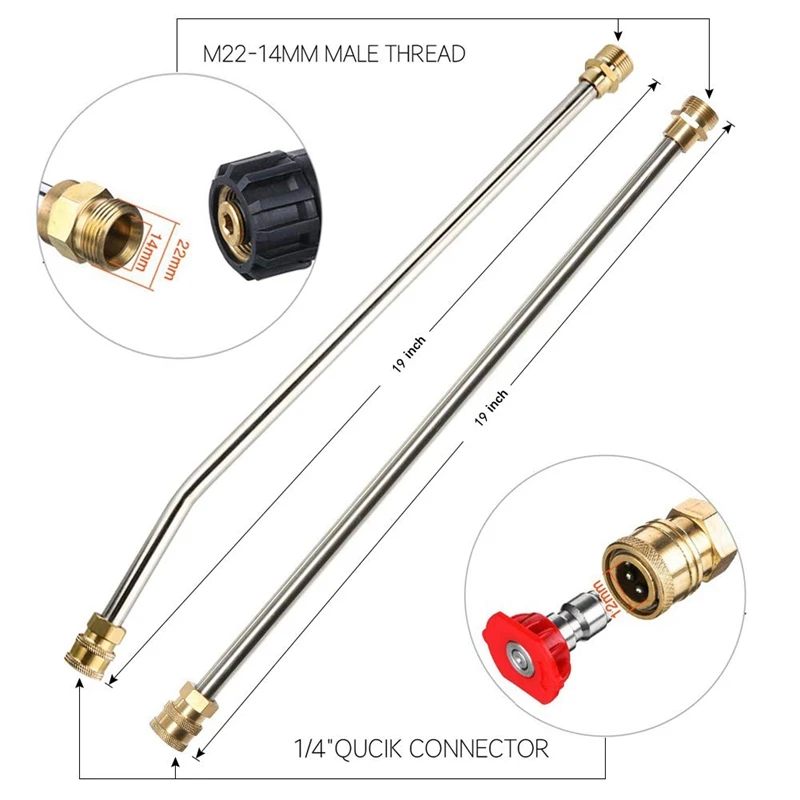 Мощный пистолет-распылитель для мойки под давлением, 19 дюймов, прямая палочка с изогнутым стержнем на 30 ° градусов M22 14 мм, шарнирное соединение на 15 мм 3/8