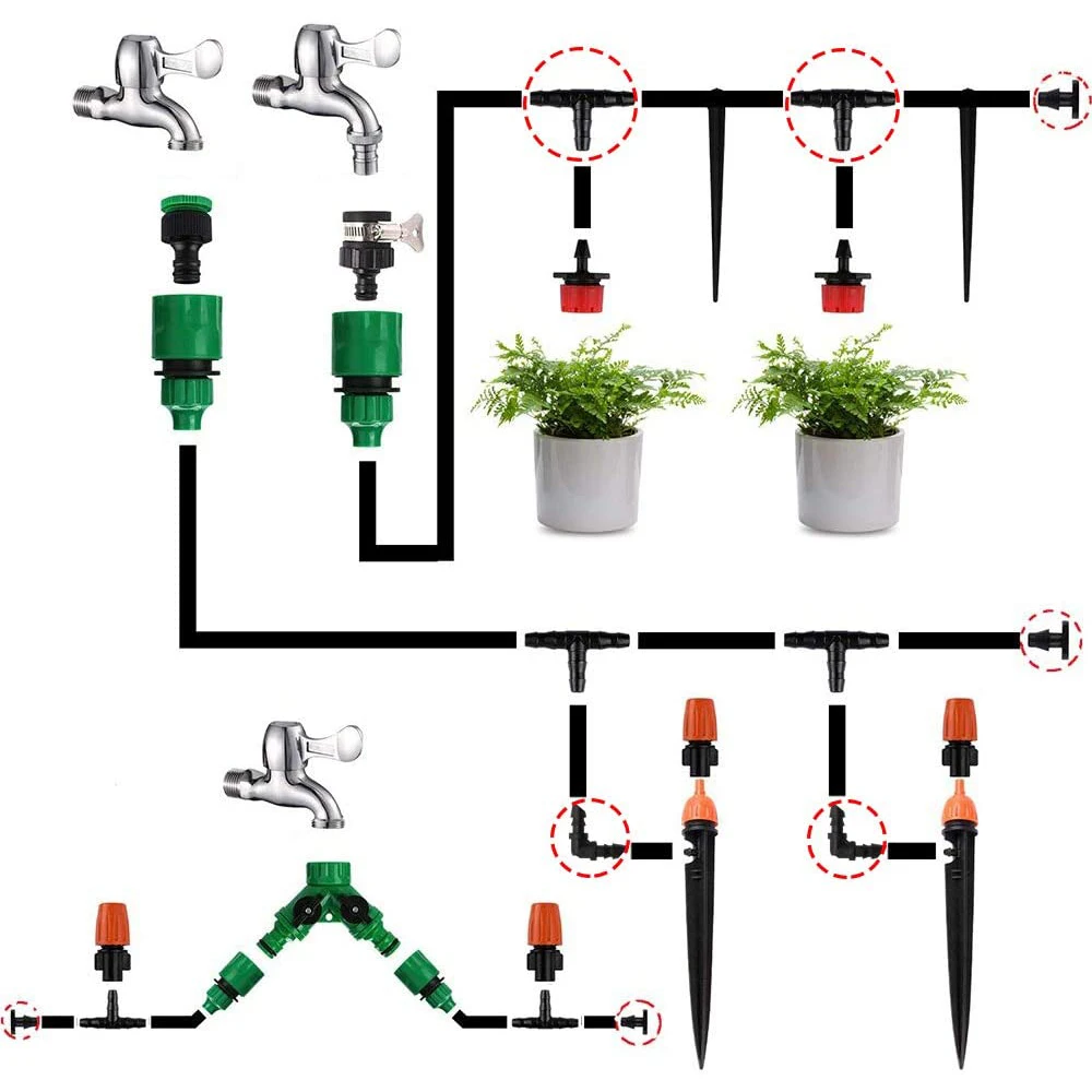 50 шт. t-образный штекер 3/5 мм 4/7 мм шланговый соединитель капельного полива и орошения Системы полива колючей разъем T Форма три отверстия Адаптер для труб