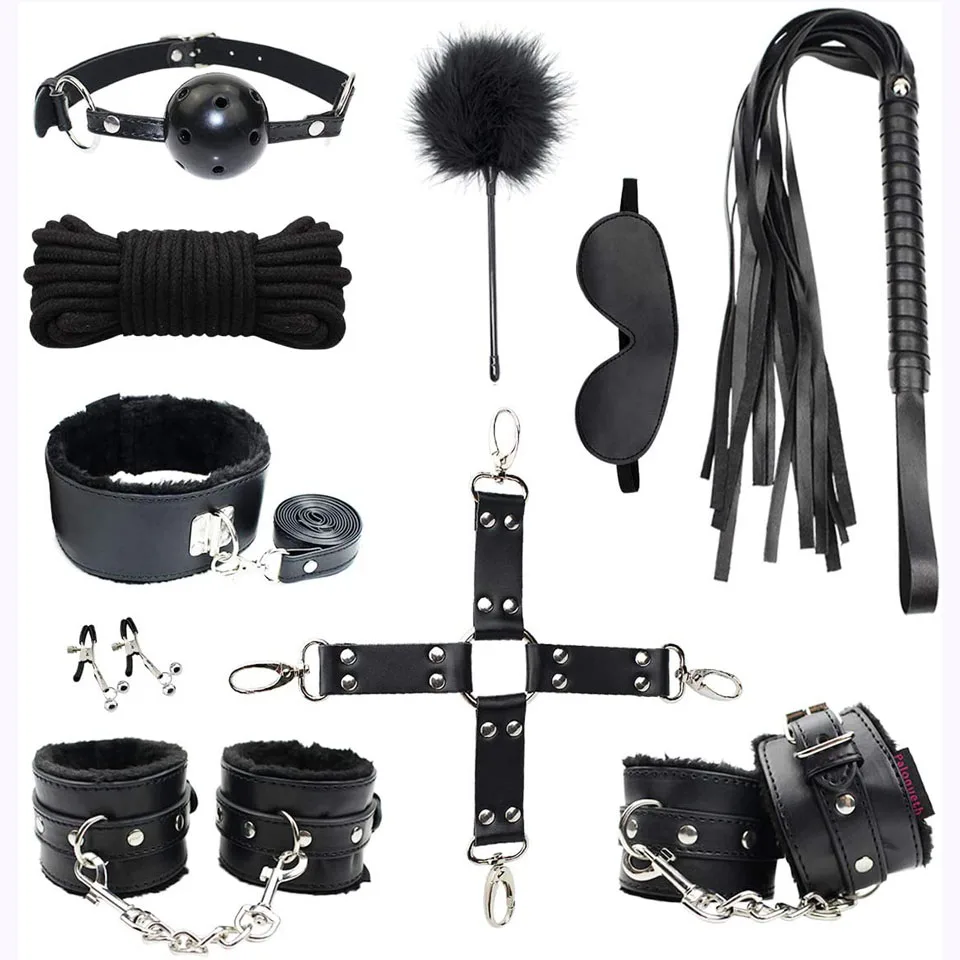 10 шт. интимные игрушки для женщин садо эротический комплект товары для взрослых для масляного фильтра с регулировкой веревка соски зажим кляп кнут Секс Инструменты Наборы для пар