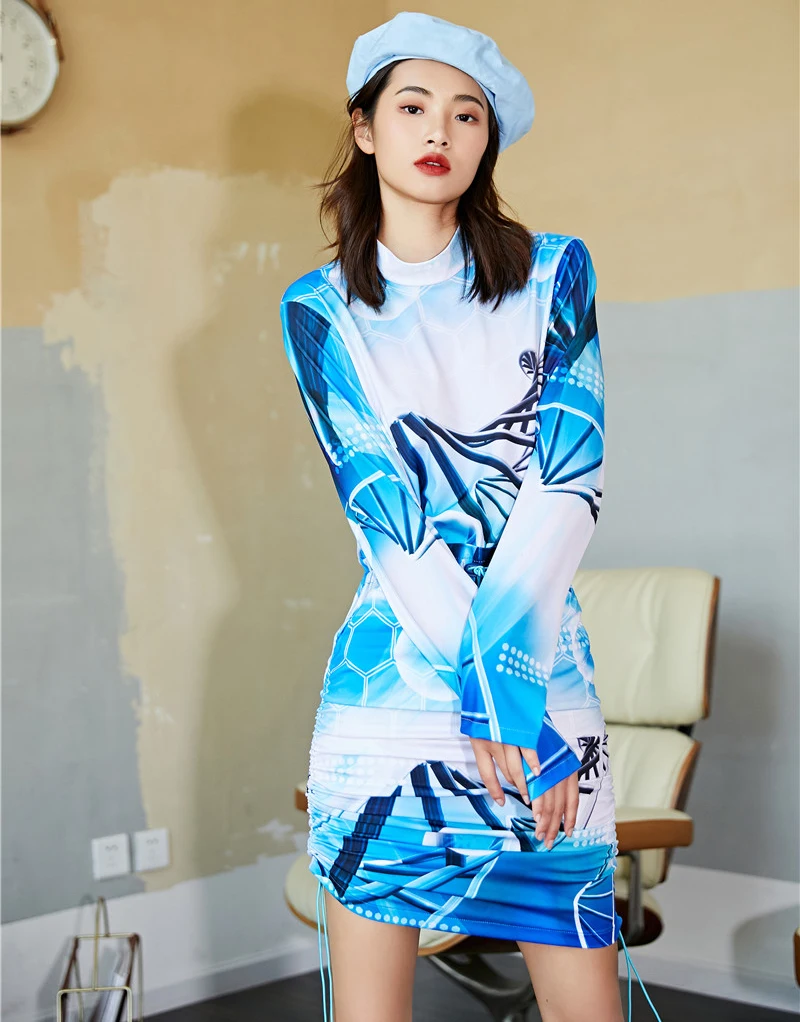 Информация о продукте: 1) женские синие юбки из двух частей 2) Размер: один размер Посылка включает в себя: 1 Топ + 1 юбка