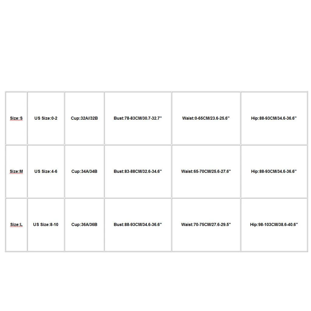 | Размер: L | Размер США: 8-10 | Чашка: 36A/36B | Бюст: 88-93 см/34,6-36,6" | Талия: 70-75 см/27,6-29,5" | Обхват бедер: 98-103 см/38,6-40,6 дюйма |