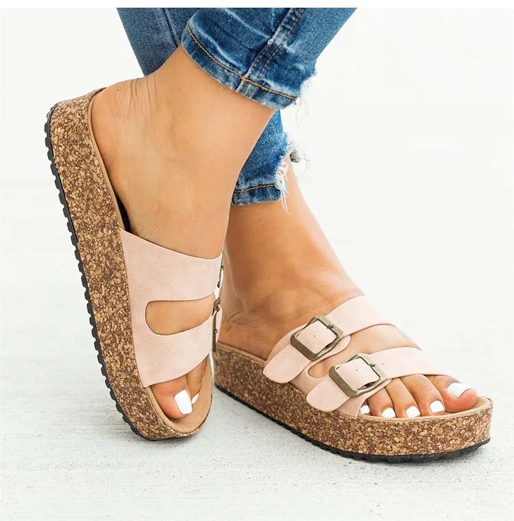 Женские босоножки; Коллекция 2021 года; Женские босоножки с пряжкой на ремешке; Женская обувь на платформе; Однотонные сандалии; Женская обувь; Женская пляжная обувь для улицы
