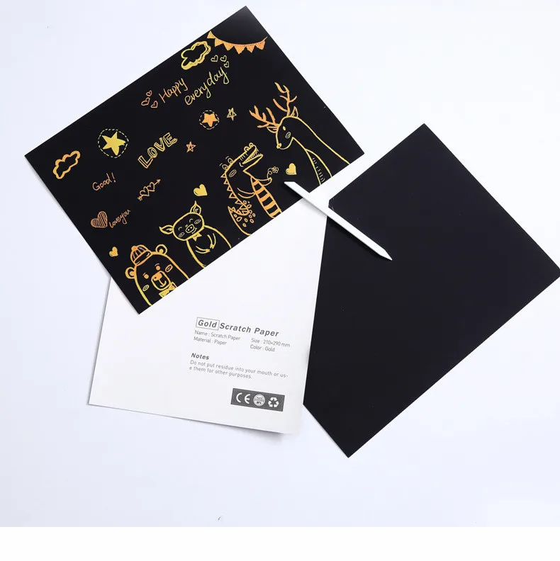 Название: набор шаблонов для рисования с царапинами Размер страницы: 21*29 см (размер А4) Размер упаковки: 24*33 см Материал: офсетная печатная бумага и белый картон + ПЭТ Товары: 5 шаблонов + 2 градиентных золотых скраба DIY Бумага + 3 цветных скраба DIY Бумага + 1 царапина ручка