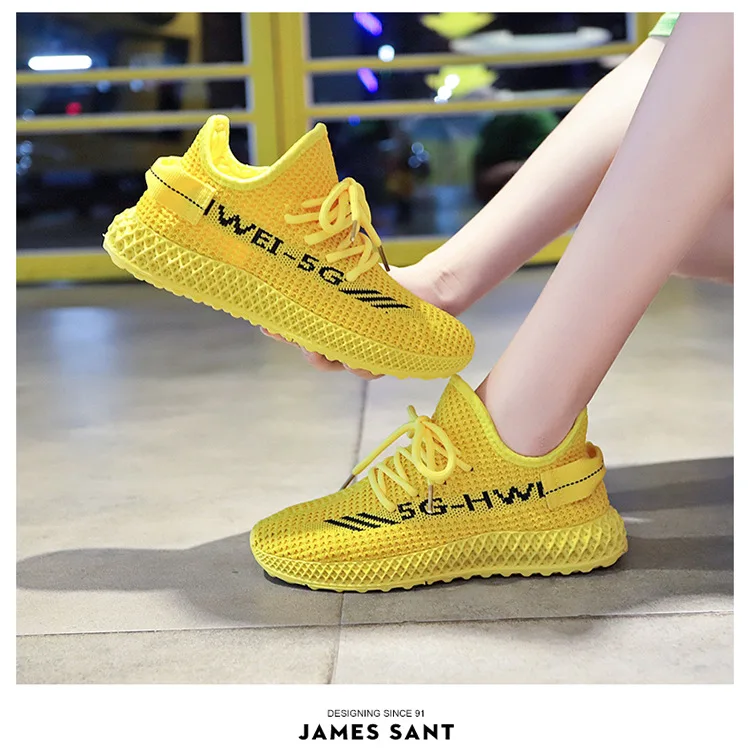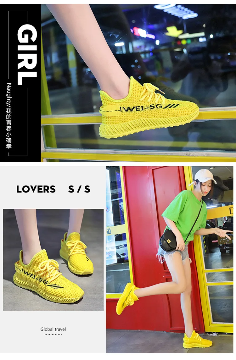 Модная весенне-летняя желтая трикотажная дышащая повседневная обувь, женские кроссовки, Корейская спортивная обувь для отдыха, Женская Вулканизированная обувь