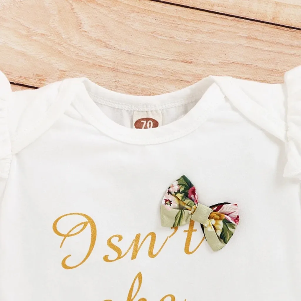 Комбинезон с короткими рукавами и буквенным принтом для маленьких девочек + шорты с цветочным принтом + повязка на голову