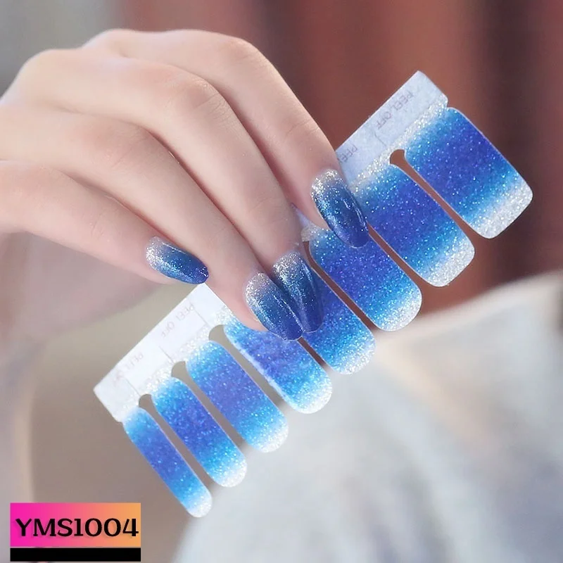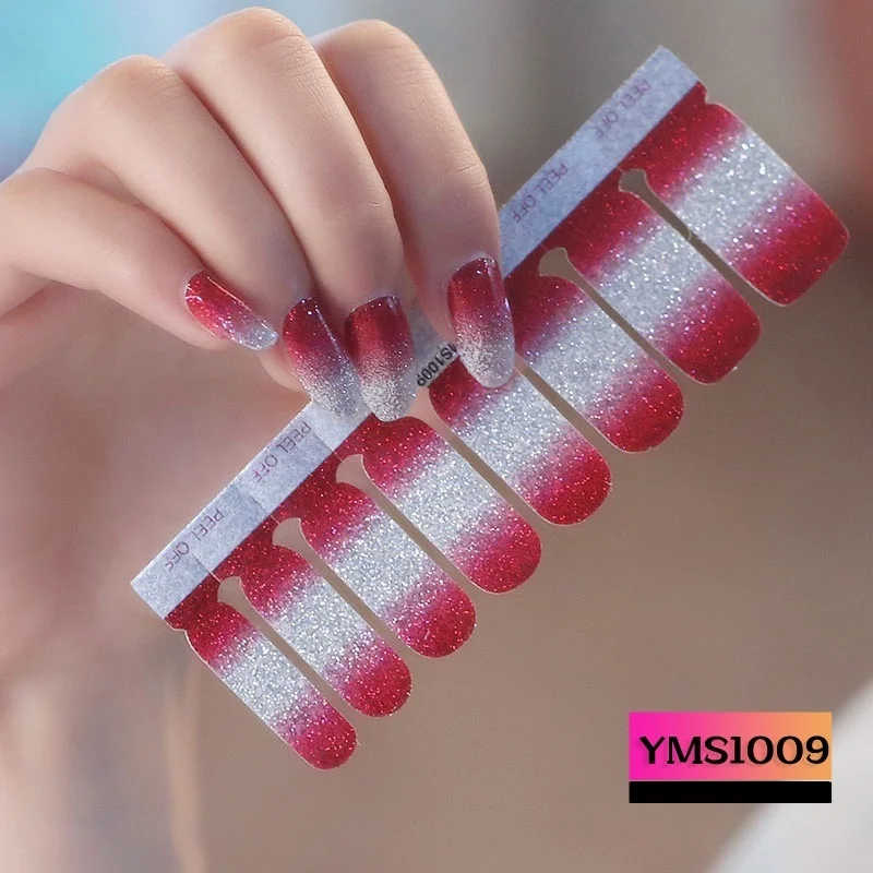 1PC (included 16 Small Stickers )LADY KINDOM Glitter Gradient Full Cover Nail Polish Sticker Waterproof Long Lasting Nail Strips Eco-friendly Nail Decals Sticker(YMS1001-YMS1014)