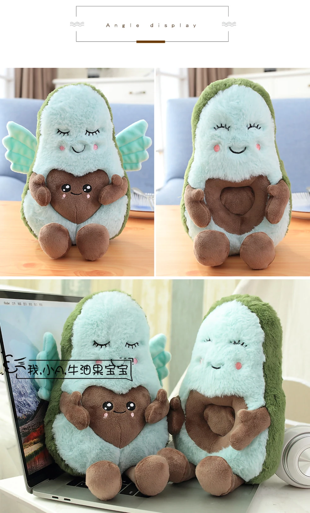 2020 New Creative Hot Valentine's Day Gifts Love Confession Angel Wings Concave Heart Shaped Avocado Doll Plush Toy For Children