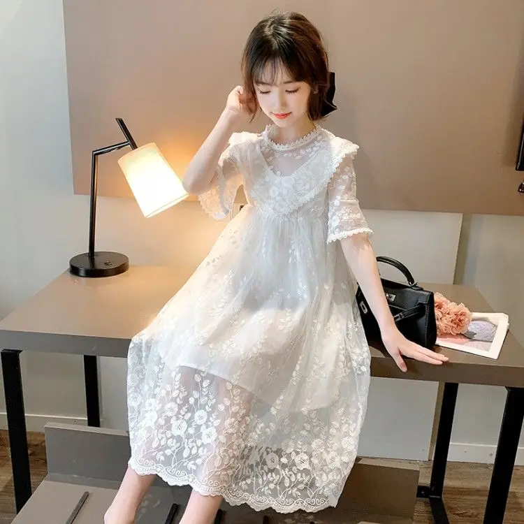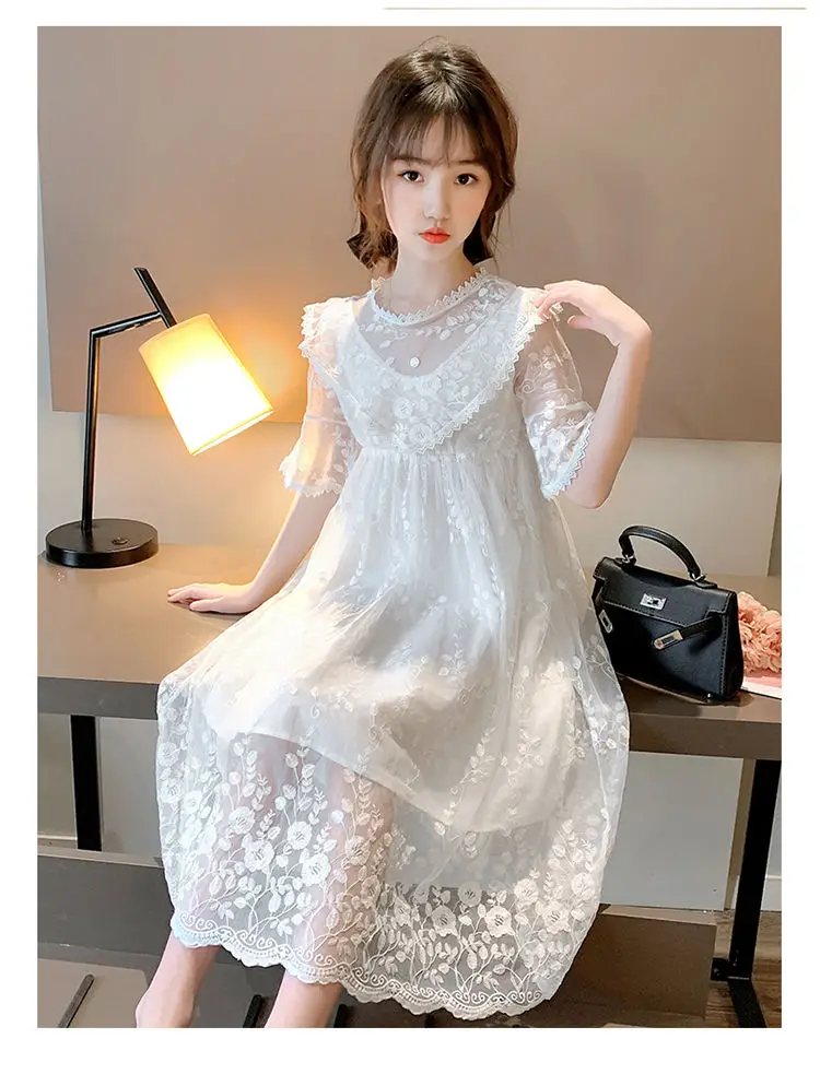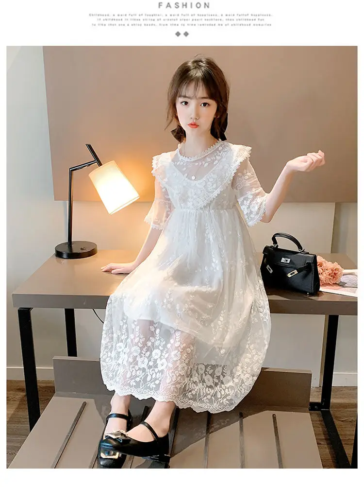 Новые детские платья белое кружевное длинное платье принцессы для девочек 4, 6, 8, 10, 12 лет