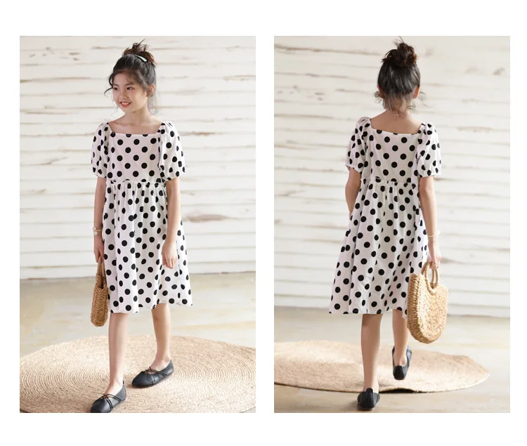 Черные платья в горошек с квадратным воротником для девочек, повседневные, 2020, Новое поступление