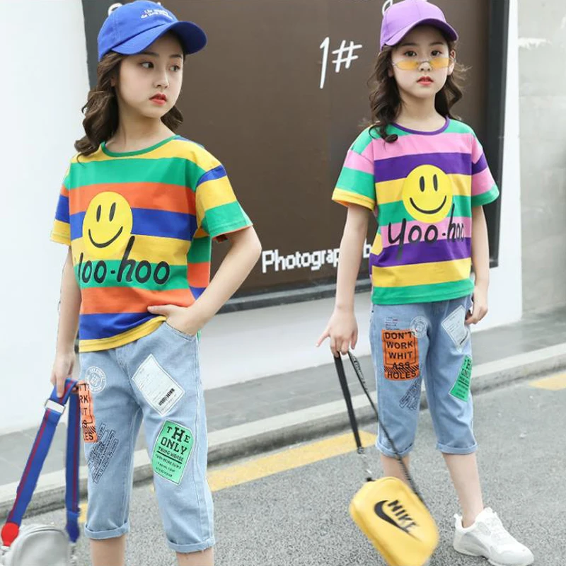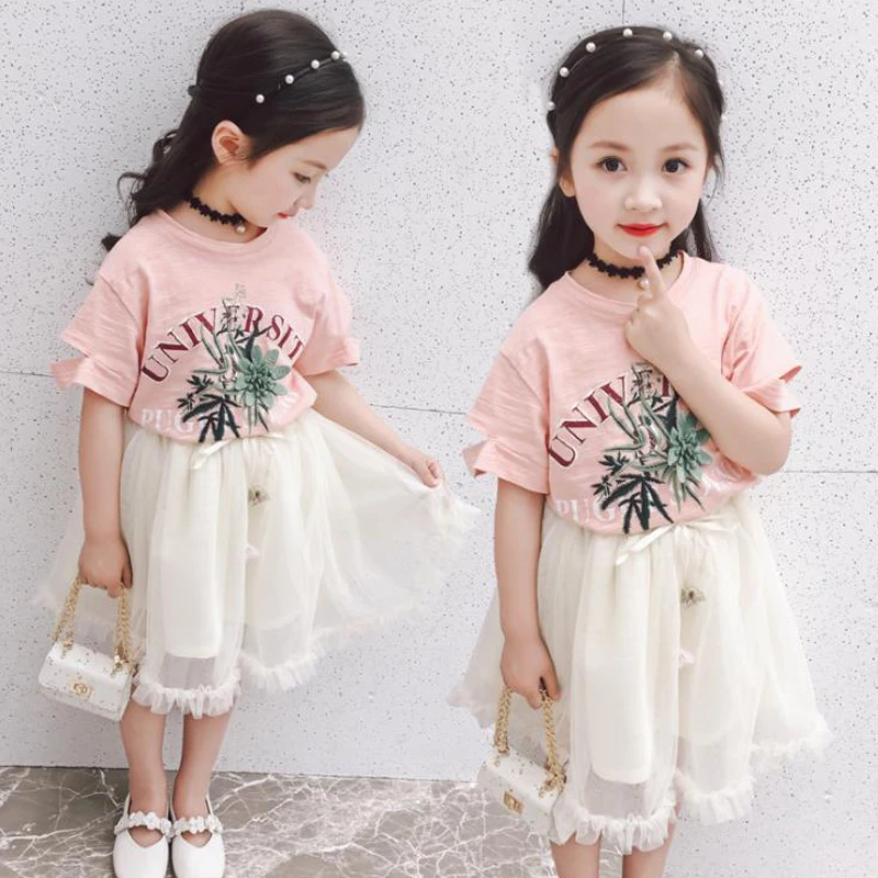Одежда для девочек хлопковая юбка на подтяжках летняя футболка с короткими рукавами из двух предметов Качественная детская одежда с рисунком кота для детей 1-4 лет