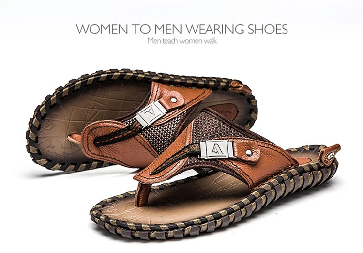2019 мужские вьетнамки летняя Для Мужчин's Новый Стиль кожа Мягкая обувь пляжные