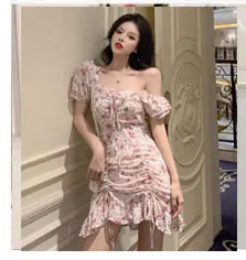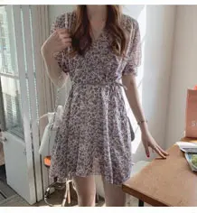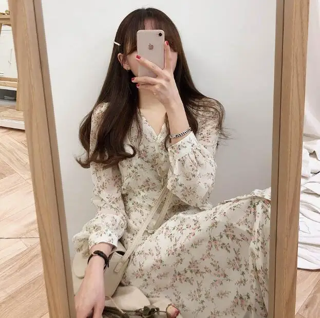 Длинное шифоновое Красивое Летнее женское платье Flhjlwoc в корейском японском стиле, бело-голубое винтажное платье с цветочным принтом в стиле ретро, 5117
