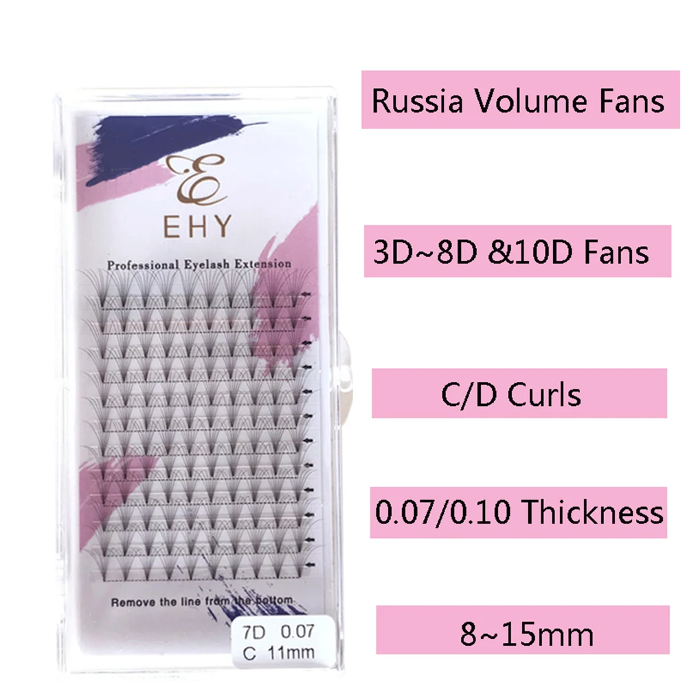 12 рядов/чехол 3D ~ 10D предварительно сделанные русские объемные веерные ресницы из искусственной норки для наращивания ресниц ручной работы полностью натуральные длинные ресницы для макияжа