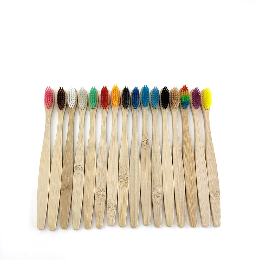Новый Дизайн Смешанные цвета бамбуковая зубная щетка Экологичная деревянная зубная щетка мягкая щетина наконечник уголь для взрослых уход за полостью рта зубная щетка