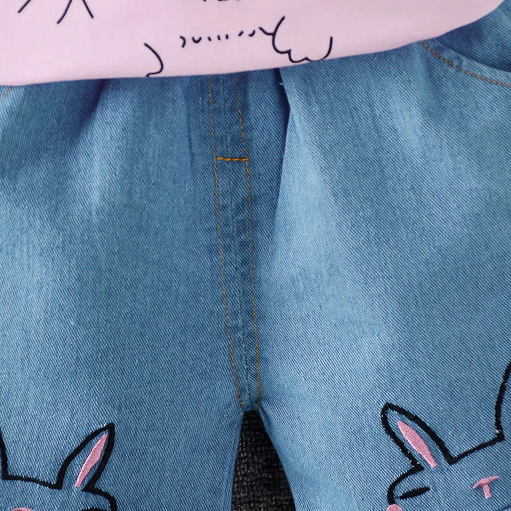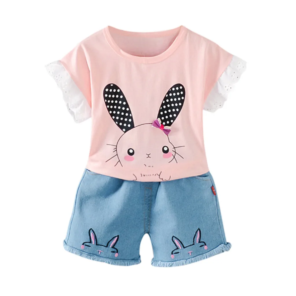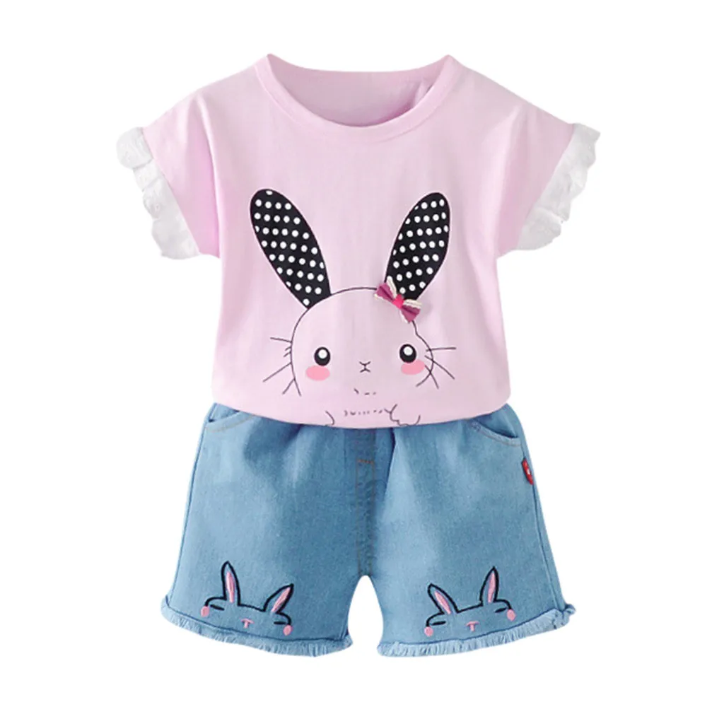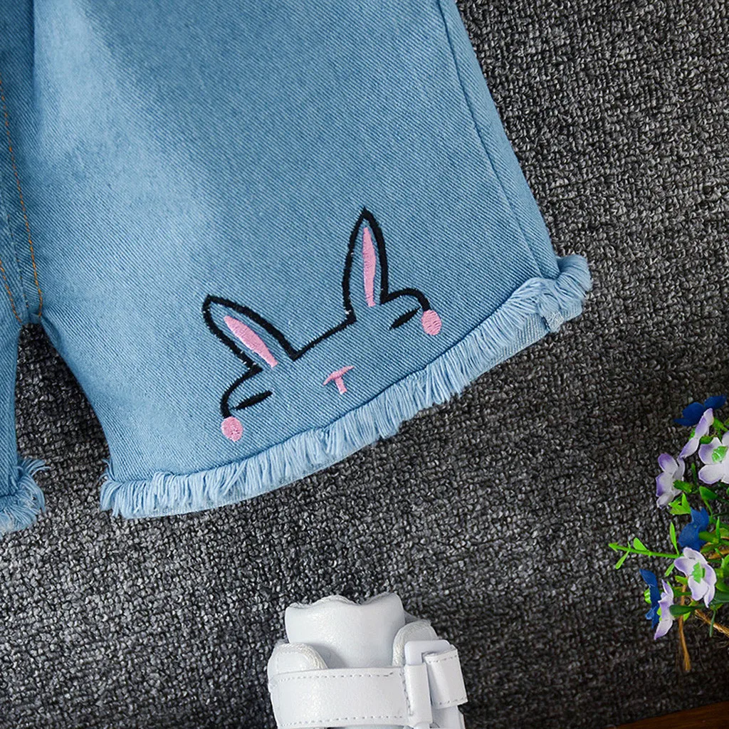 Одежда для маленьких девочек; Топы принцессы с принтом кролика; Футболки; Шорты с зайчиком; Джинсовая одежда