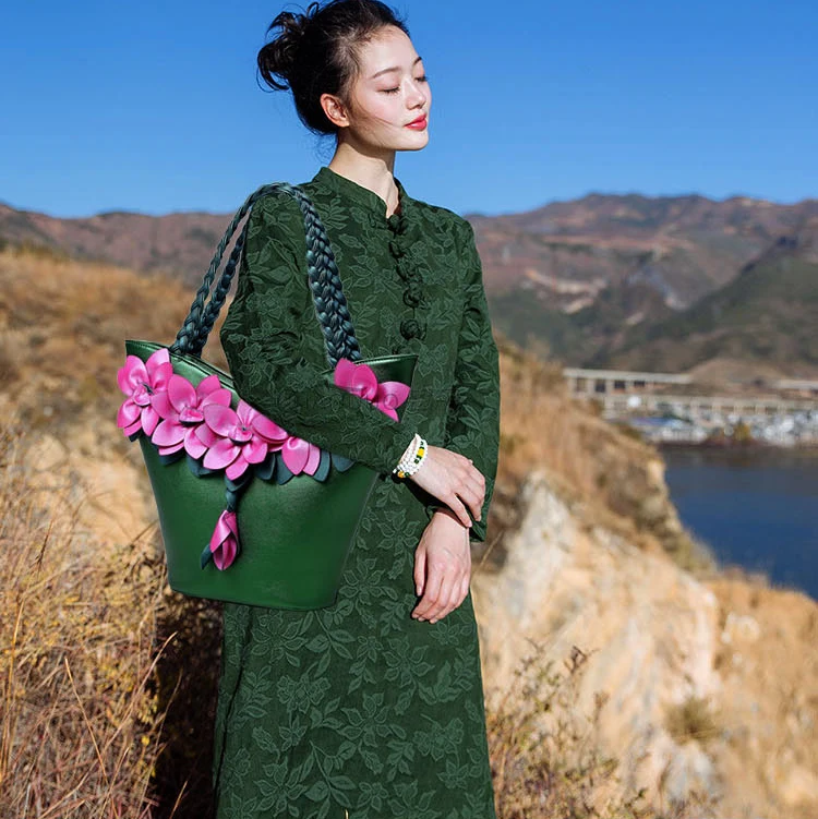 2020 ручная работа, сумки-ведра с цветами, женские мини сумки на плечо с цепочкой и шнурком, маленькие сумки кросс-боди с наклейками листьев жемчужные сумочки 25,8 долларов США/Шт/Партия 1