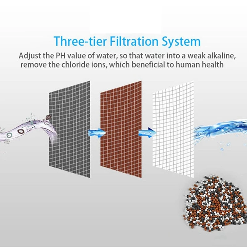 Четырехкратная система фильтрации: первый слой нано-керамического фильтра ржавчины воды, осадков, красного червя и других крупных частиц примесей, второй слой камня maifan регулирует значение pH воды, так что вода слабо щелочная, Третий слой активированного угля адсорбирует запах воды четвертый слой фильтров снова захватывает источник загрязнения, делая воду более чистой.