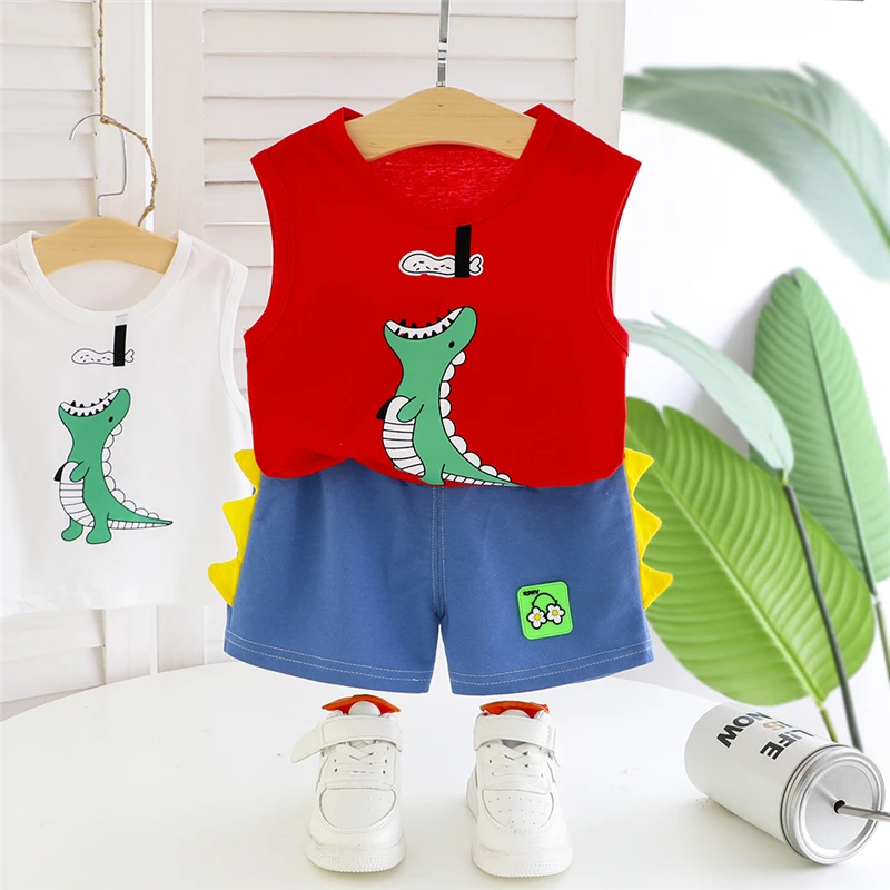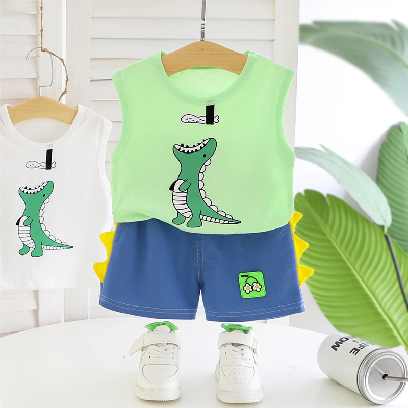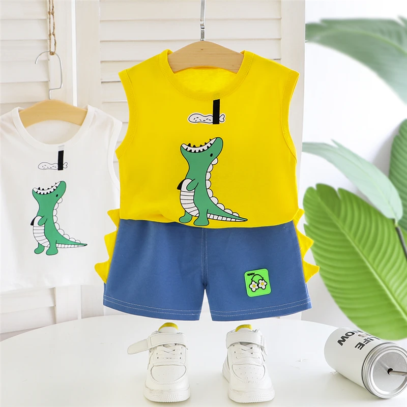 Новый летний комплект одежды для маленьких девочек, детский хлопковый жилет для мальчиков, шорты, комплект из 2 предметов, Модный повседневный костюм, детский спортивный костюм для От 0 до 5 лет