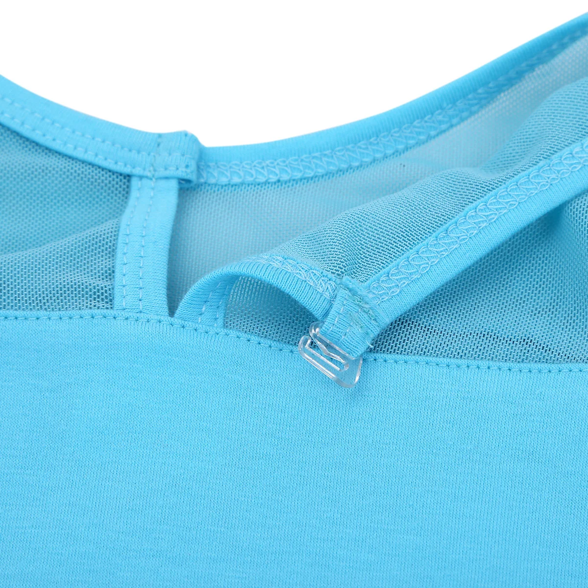 Круглый вырез, сетчатые плечевые ремни, задняя горловина с застежкой для легкой одевания.