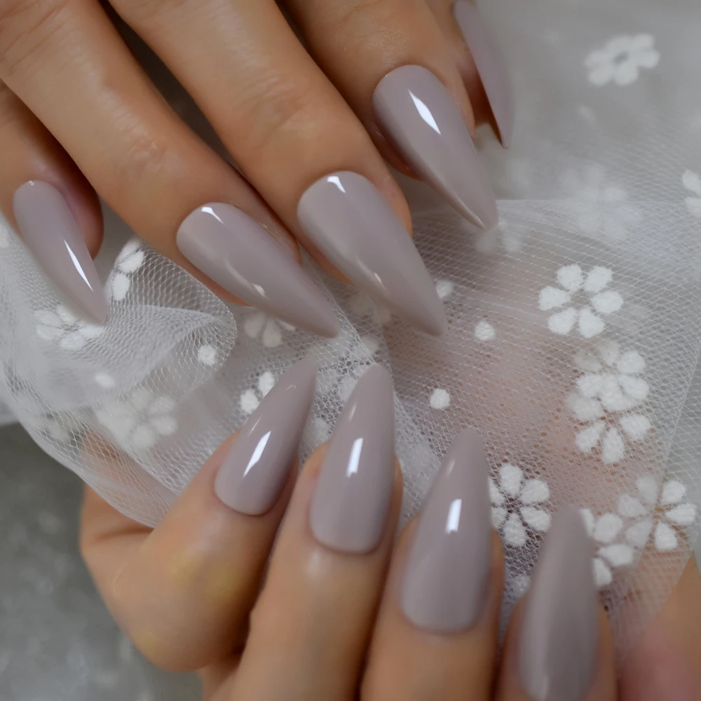 Кремовые светло-коричневые накладные ногти, длинные, средние, заостренные, искусственные акриловые Типсы для дизайна ногтей, Предварительно Разработанный УФ-лак для ногтей, 24 шт.