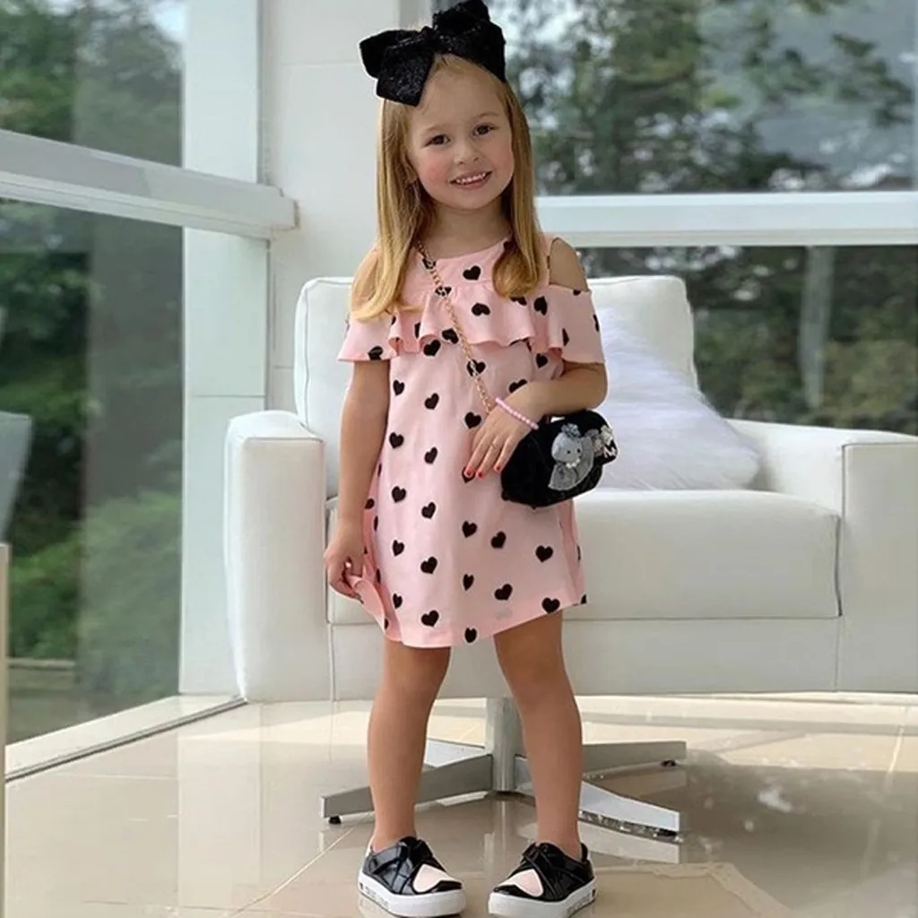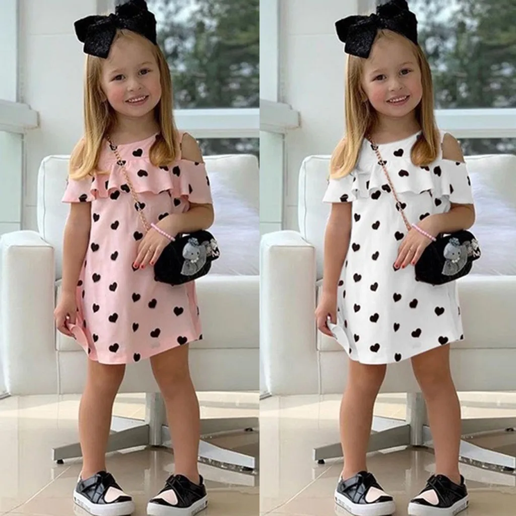 Платье принцессы с оборками и принтом в виде сердца для маленьких девочек повседневная одежда