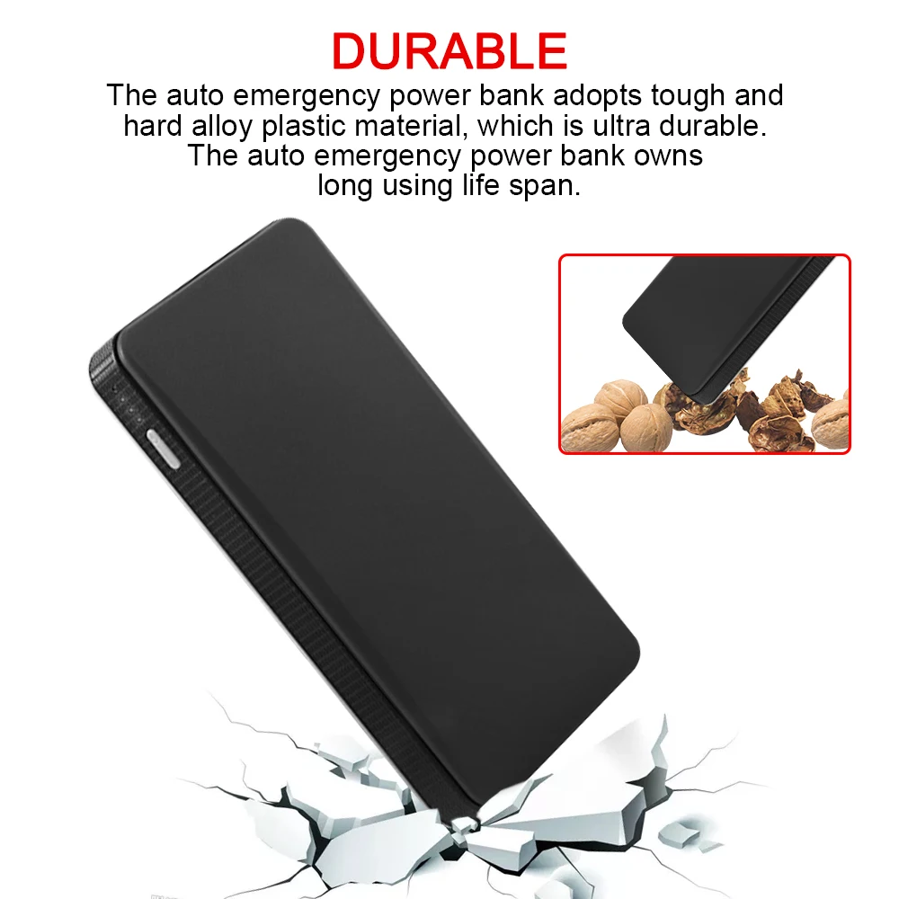 Автомобильный аварийный внешний аккумулятор изготовлен из жесткого пластика, который очень прочный. Автомобильный аварийный внешний аккумулятор имеет длительный срок службы.