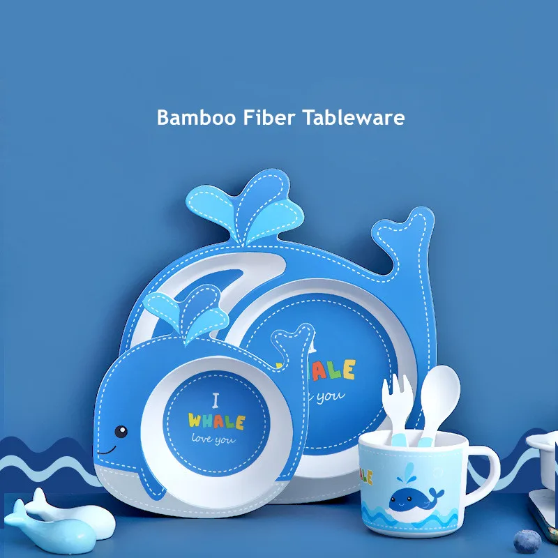 5 шт. набор детской посуды из натурального бамбукового волокна миска с чашкой ложка тарелка вилка детская посуда тарелка набор посуды