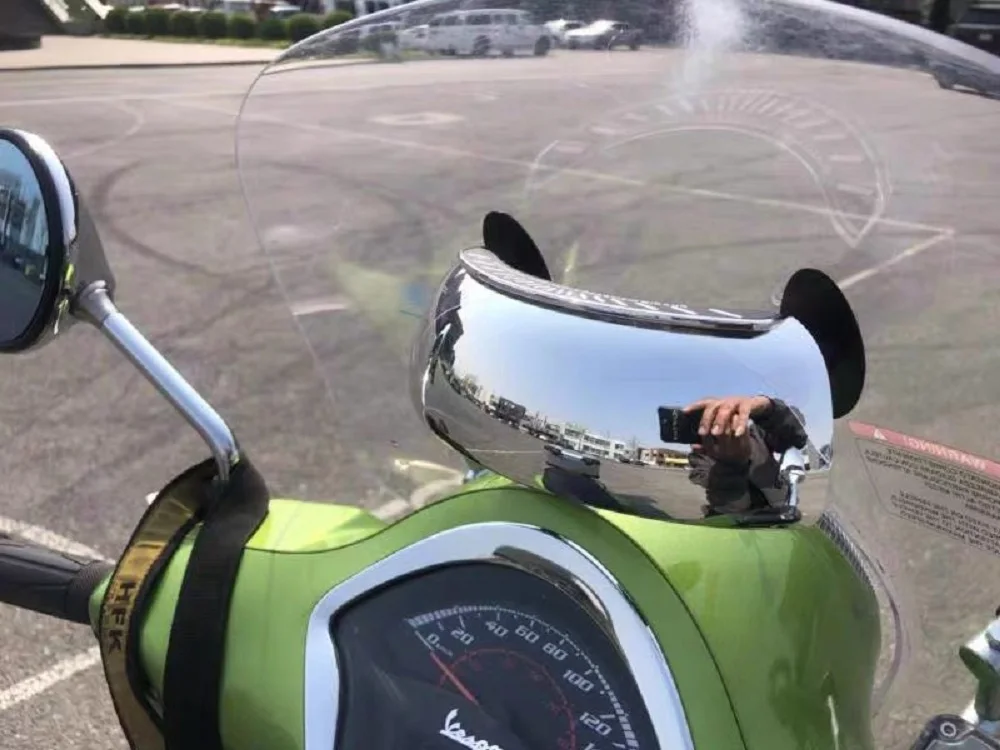 1. Это параболическое зеркало, которое крепится к центру передней части мотоцикла/скутера в пределах линии переднего обзора гонщиков.