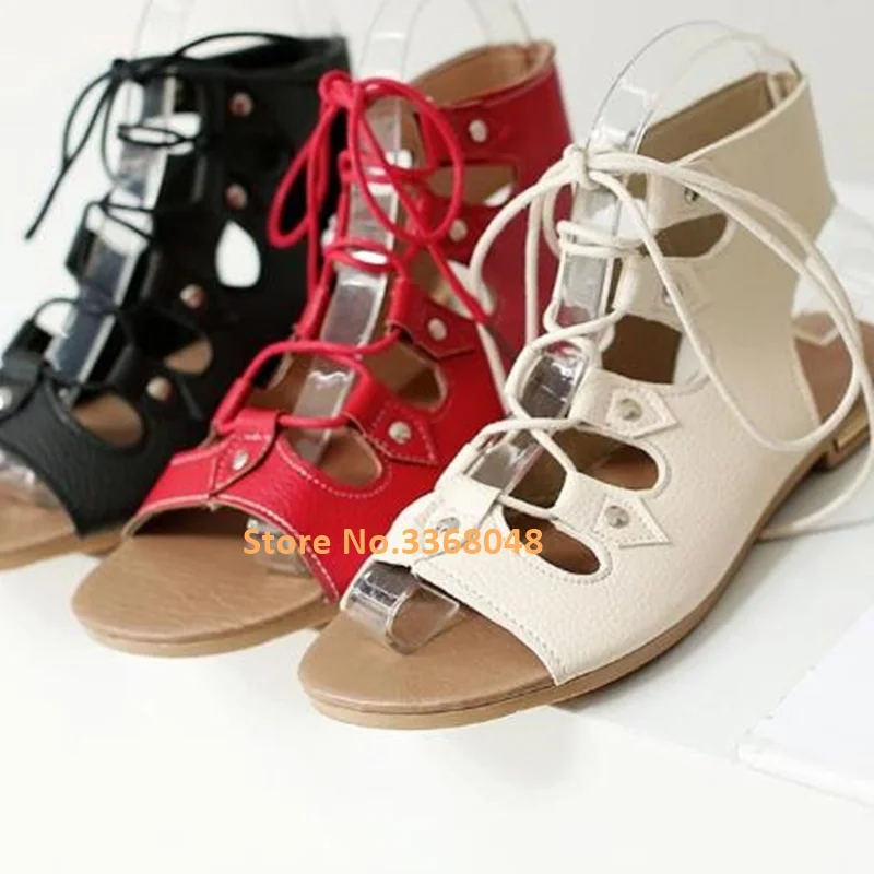 Наименование товара: сандалии на плоской подошве в римском стиле; Кожаная женская летняя обувь на завязках; Обувь с открытым носком и вырезами; Повседневная женская обувь по цене Индивидуальные: принимаются Цвет: черный/бежевый/красный Размер: 34-43 европейский размер Особенности: сандалии на плоской подошве в римском стиле Популярный элемент: полые, плоские, со шнуровкой Повод: Повседневный Носок: открытый носок Сезон: лето