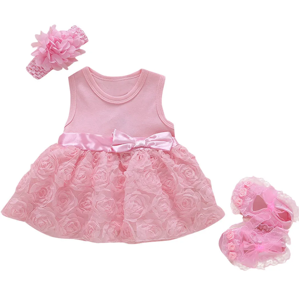 Платье принцессы без рукавов с бантом и цветочным рисунком для маленьких девочек; Комплект одежды с повязкой на голову