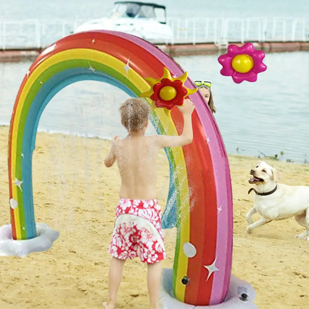 1. Практичный в использовании: надувной Радужный водяной разбрызгиватель практичен в использовании, что сделает ваших детей счастливыми.