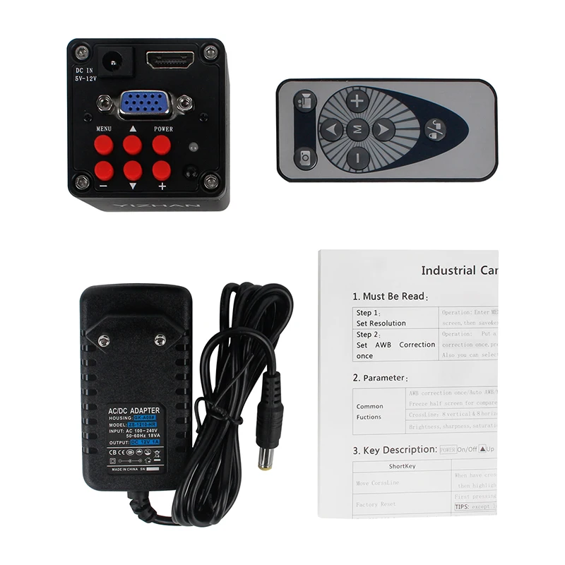 1. Набор камеры микроскопа (HDMIVGA231V-D6KEY) 2. Подставка для микроскопа 3.130x C крепление объектива 4. Белый светодиодный кольцевой светильник (пожалуйста, свяжитесь со мной, если вы Нужен черный)