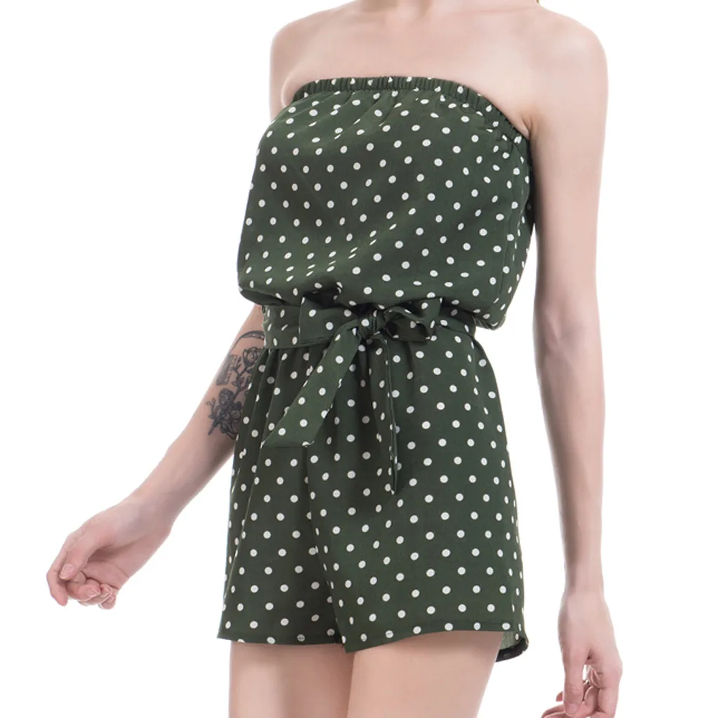 3.Узор в горошек, без рукавов, эластичная высокая талия, топ-комбинезон, модный и свежий летний комбинезон.