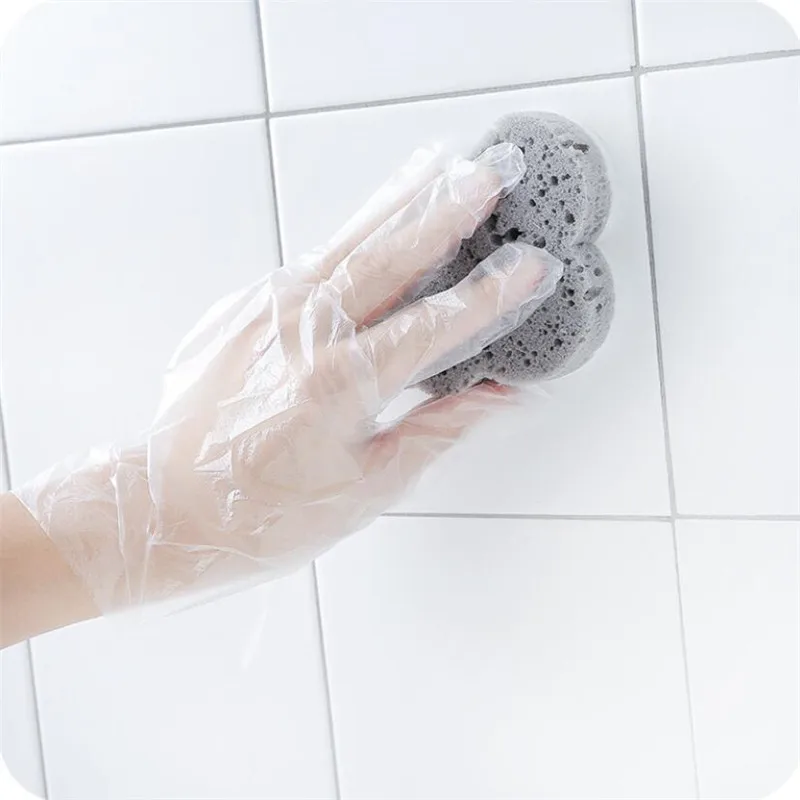 Features: Left hand and right hand all can use.It is great for woodworking, house cleaning and general maintenance.Great choices for you or your family. One size fits most.Material: PlasticSize: As picture shows Color: TransparentPackage Includes:50/ 100 x Disposable Plastic Gloves