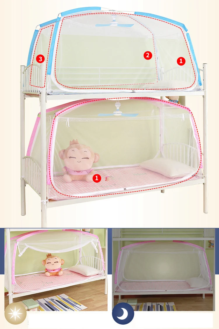 Student Mosquito Net Single Bed Bunk Bed Tent University Dormitory Anti-Mosquito Yurt Mosquito Net 3 Door Polyester Mosquito Bed
