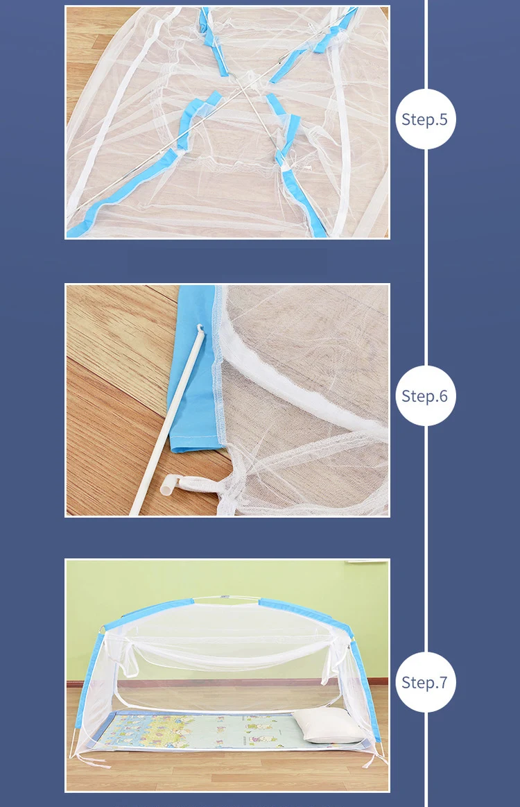 Material:Polyester Color:Blue/Pink Package Including:1 piece Two doors/three doors Full bottom mosquito net Size:about 90*190cm/120*200cm/135*200cm