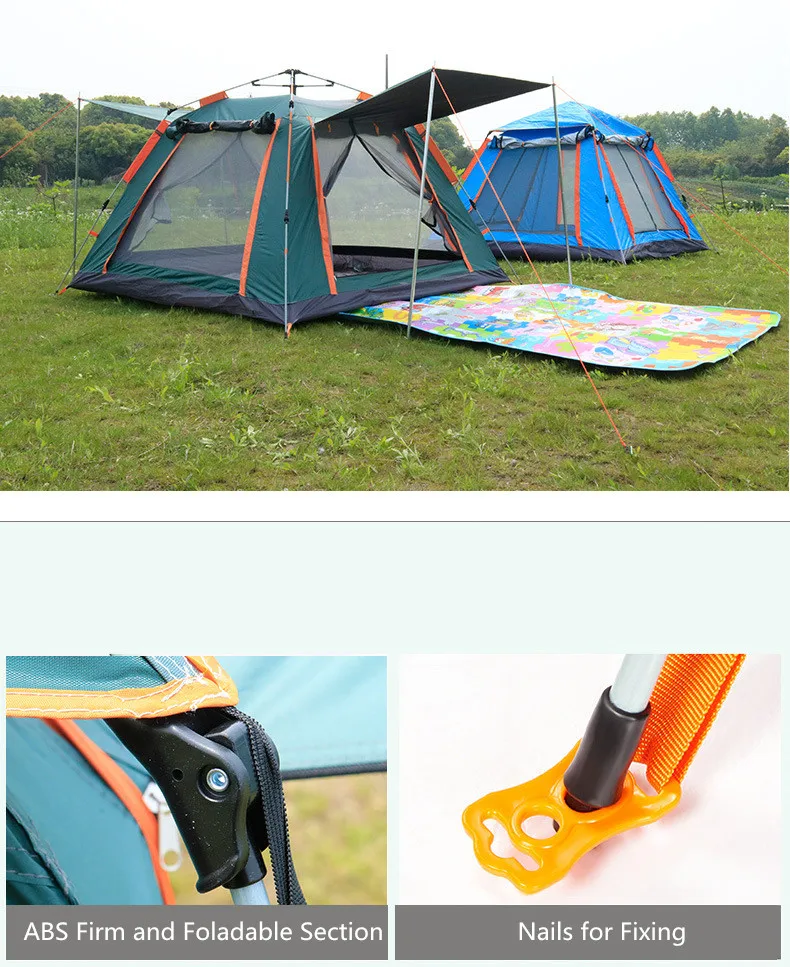 Автоматическая туристическая палатка на 3-4 человек, ультраяркая семейная беседка, водонепроницаемая, легко устанавливается Спецификация: Товар: Автоматическая палатка для кемпинга на 3-4 человек Цвет: небесно-голубой, темно-зеленый Материал палатки: Серебристая ткань 210D для защиты от солнца Материал полюса: автоматический стекловолокно полюс Размер типа A: прибл. 200*200*130 см/78,74*78,74 * дюймов Размер типа B: прибл. 220*210*150 см/86,61*82,65 * дюйма Размер посылка типа A: прибл. 76x18x18 см (Д * Ш * В)/29,92x7,09x7,09 дюйма Размер посылка типа B: прибл. 85x18x18 см (Д * Ш * В)/33,46x7,09x7,09 дюйма Особенность 1:палатка, пинговая Особенность 2: подходит для кемпинга, пеших прогулок, туризма, пляжа, рыбалки Посылка: палатка + веревки + Гвозди + 1 пара шестов
