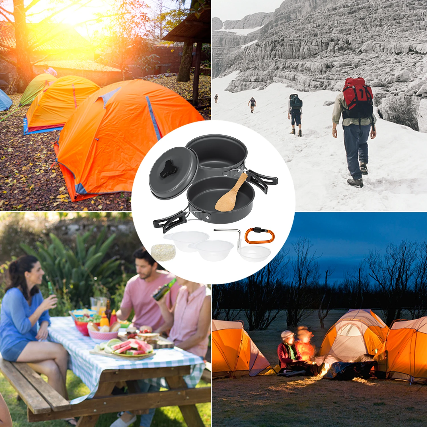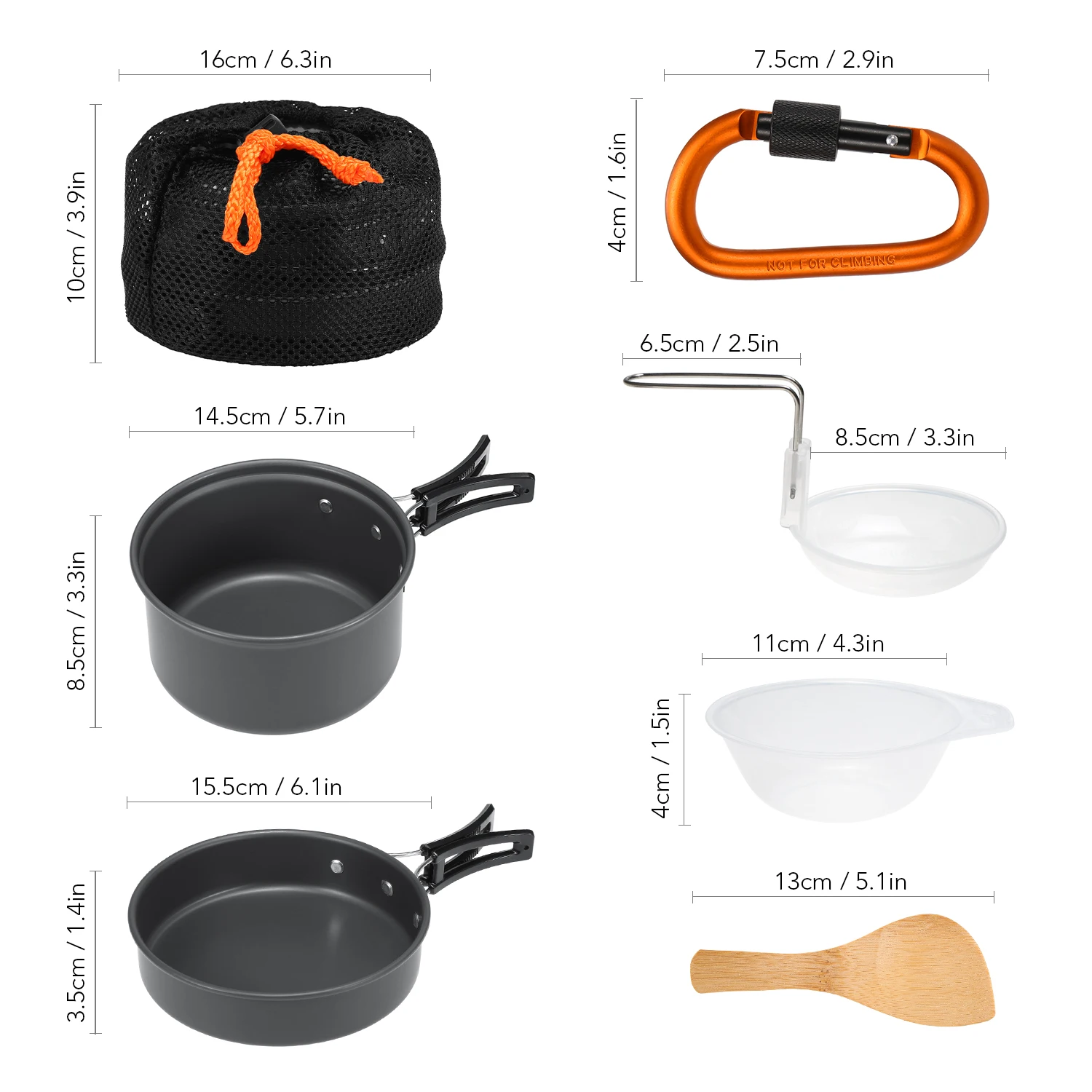 Этот набор посуды компактный и легкий, подходит для активного отдыха, такого как кемпинг, походы, альпинизм, пикник.