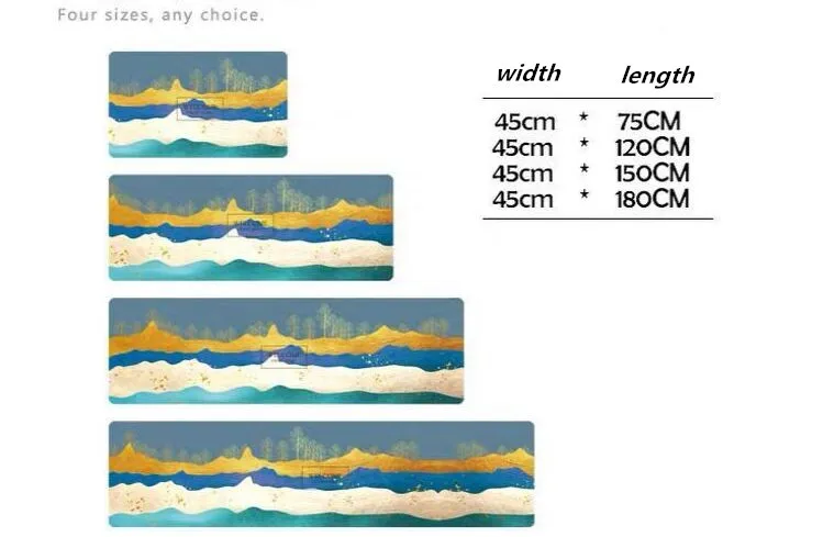 Мы предлагаем размер, как показано ниже 45x75 см, 45x120 см, 45x150 см, 45x180 см, другие размеры могут быть сделаны на заказ, пожалуйста, свяжитесь с нами!