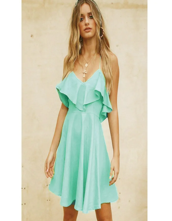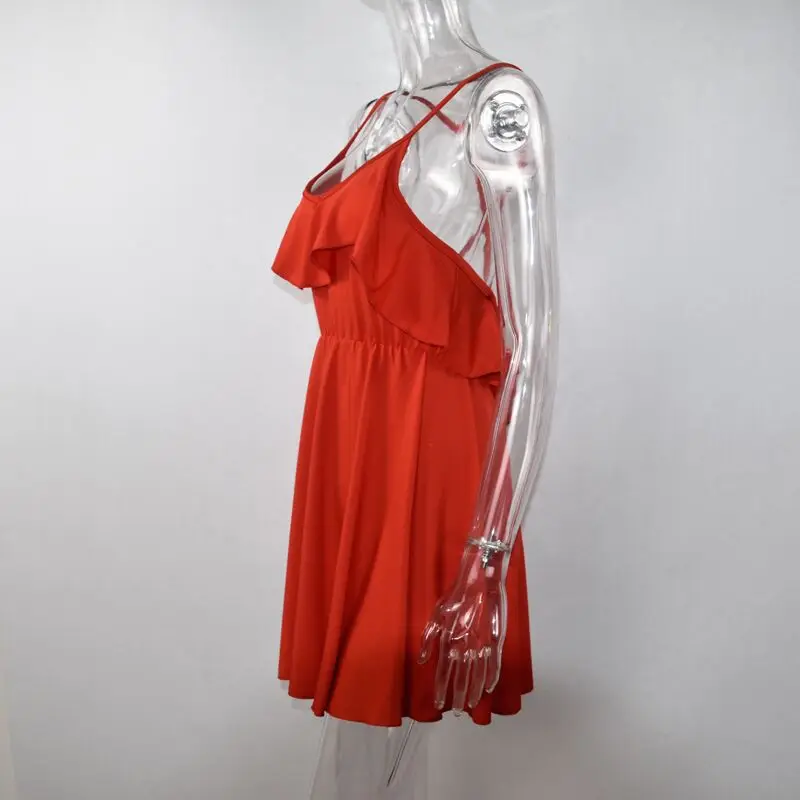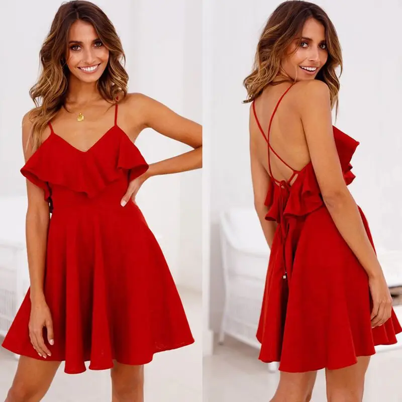 Летнее сексуальное женское платье 2020 с открытой спиной, с перекрестной шнуровкой, с рюшами на талии, Ретро стиль, с v-образным вырезом, Сексуальное Мини Летнее платье на бретелях