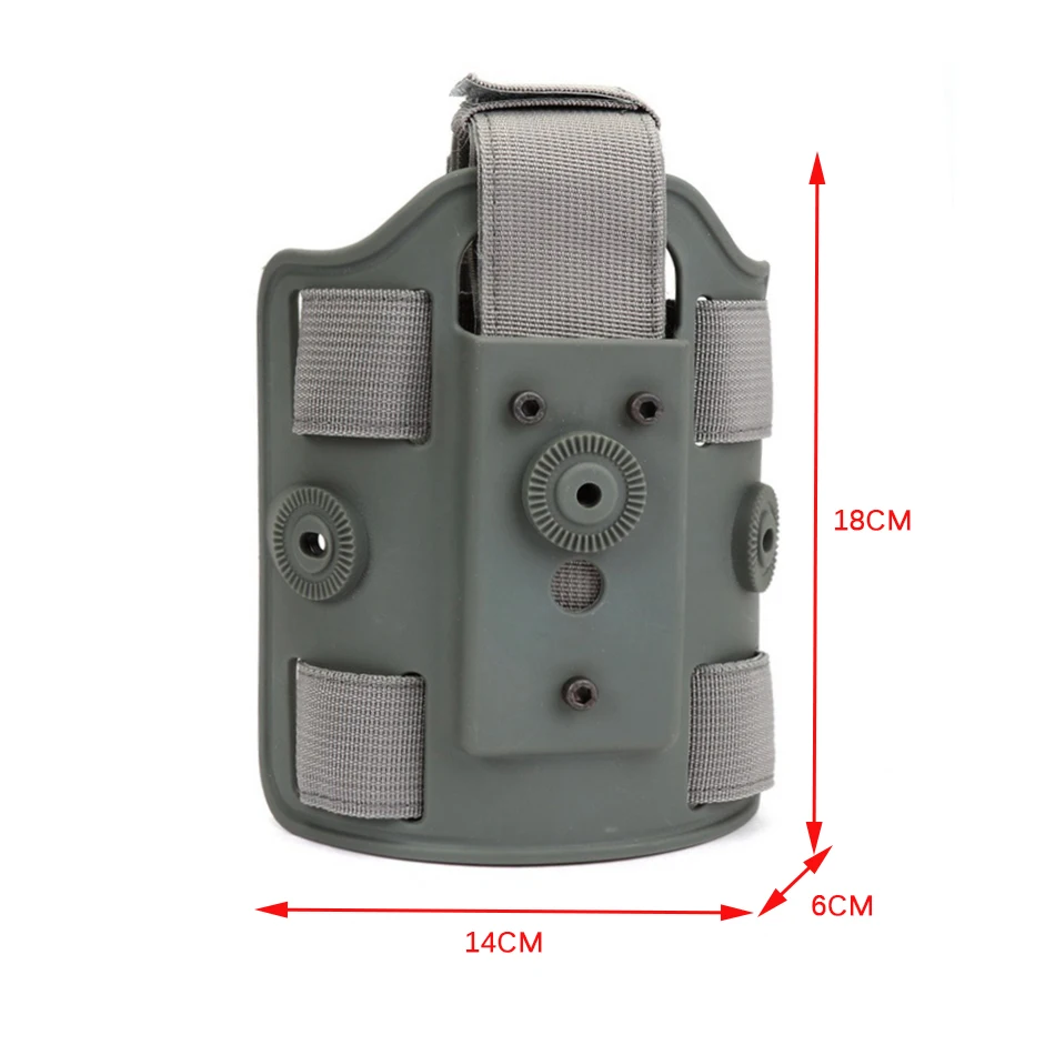 Описание: Вы можете установить любую кобуру для пистолета с 3 отверстиями в форме т к этому устройству и установить дополнительные аксессуары к нему. Например, кобура Beretta M9/Glock 17/19/Colt 1911/USP/P226. Весло изготовлено из высокопрочного полимерного материала, а шлейки для ног изготовлены из нейлона, что сделает вас привлекательным и крутым. Спецификация: Вес: 500 г Материал: Высокопрочный полимерный материал и нейлон Подходит для: Safariland M9/Glock 17/19/1911/USP/P226 Точная формованная конструкция и быстрое вырезание скорости Широкое применение: Военный и Тактический и полицейский и армейский пистолет/винтовка/военная игра CS/охота на открытом воздухе Посылка включает в себя: -1 x кобура для ног Totrait на платформе с двойными жгутами ног