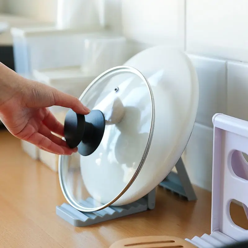 Посуда, крышка кастрюли и разделочная доска могут быть помещены на стойку для хранения и сливаются для вентиляции.
