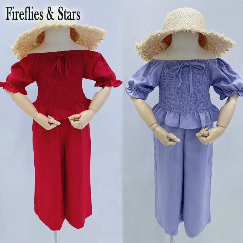 Название:Летний комплект из 2 предметов для девочек, блузка для малышей + широкие штаны Детский костюм комплект детской одежды, плиссированные с рюшами, с открытыми плечами, для детей от 3 до 8 лет