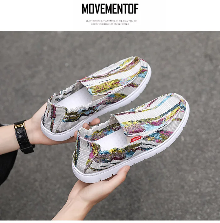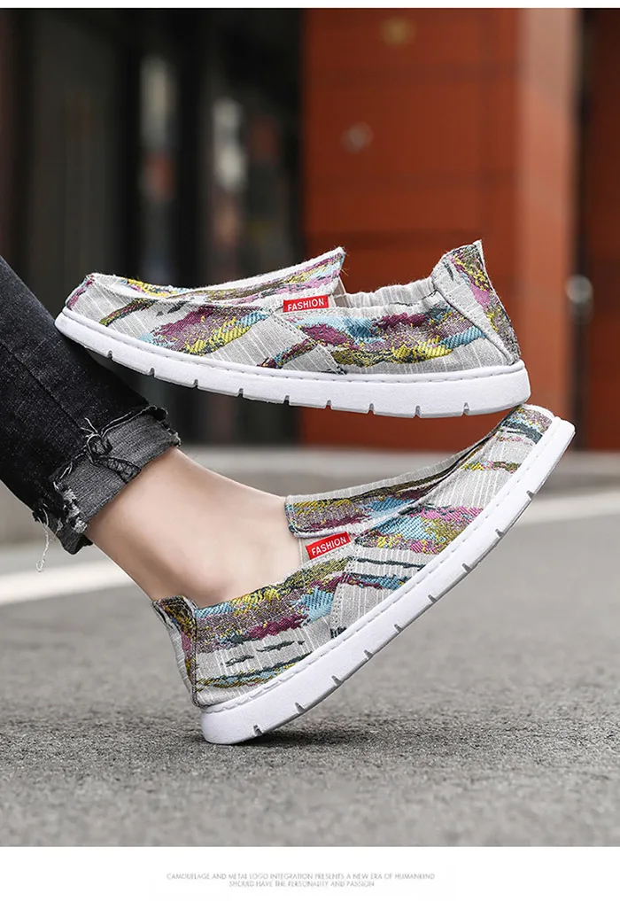 Разноцветные парусиновые мужские повседневные туфли; Тканевые лоферы; Мужские эластичные слипоны; Свободные и удобные туфли для вождения